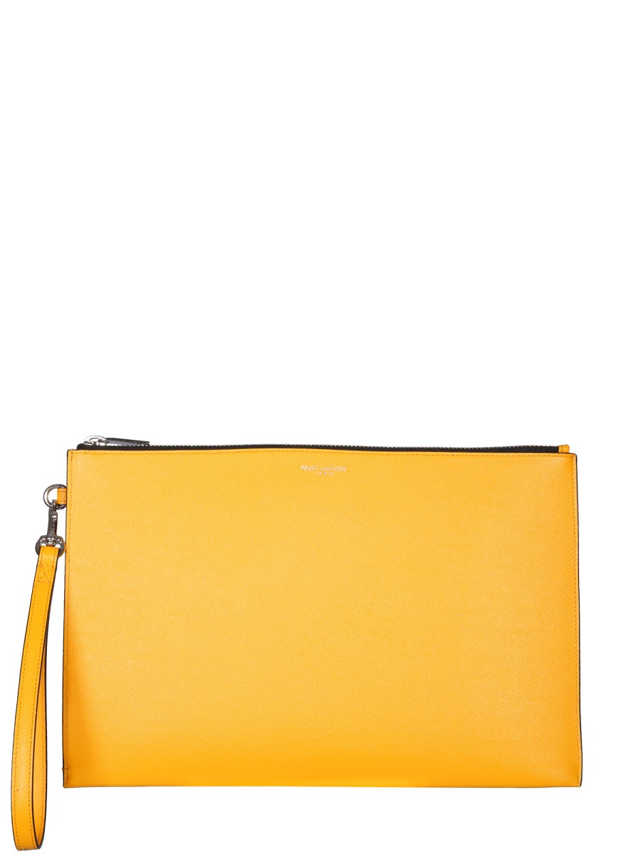 SAINT LAURENT PORTA TABLET CON ZIP IN PELLE GOFFRATA GRAIN DE POUDRE outlet | Casa